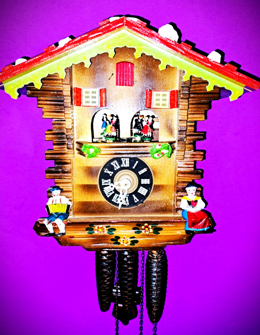 This one is an early 1970s model that has the Musical Operating Set Up that hangs from the top upside down, a rare set up even for collectors. We installed a New Music Box on this one, its kind of tight and in time will sound better. We also installed a New set of Bellow Tops and Pendulum and Clock hands. From now on we will install a Flower on the hands of the lady just in different colors. . The movement and all metal parts was sonically cleaned then oiled, after reassembly we test-run it for 4 days. . Measures appx. 12 inches high by 9 inches across and about 6 inches deep. Comes with a Numerical Certificate and with easy pictured set-up instructions and a 3page article about Cuckoo clocks origins.